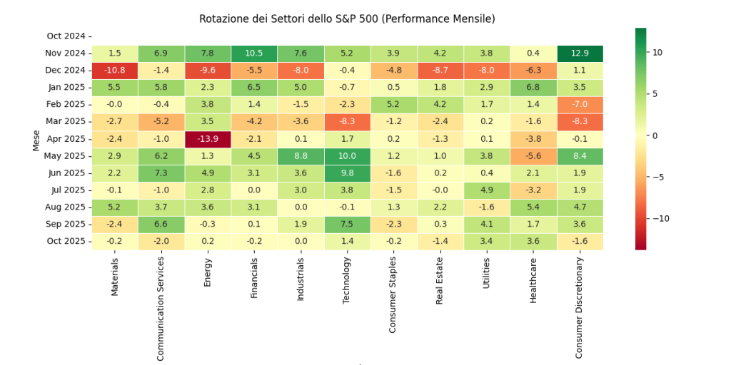 La consueta analisi mensile sulla rotazione dei settori dello S&P500 ci conferma a settembre 2025 il momento particolarmente positivo delle società tech, ma, un po’ a sorpresa, spunta il risultato delle utilities.