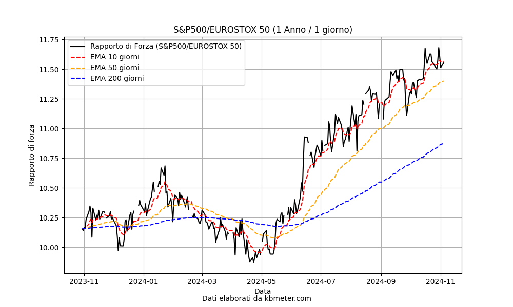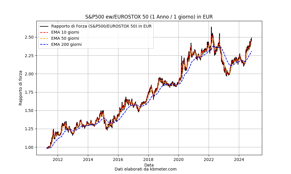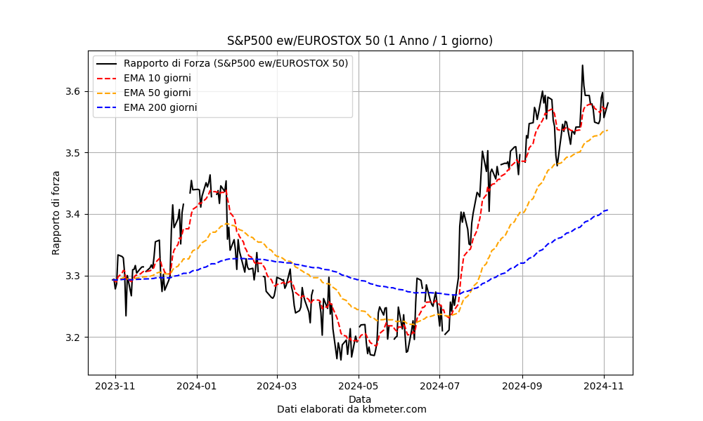 It can be seen that the first part of 2024 was favorable for the European index, while since last May concerns about economic growth in the area and expectations of a rate cut by the FED have completely reversed the picture. At the moment it is almost impossible to see a reversal of this trend.