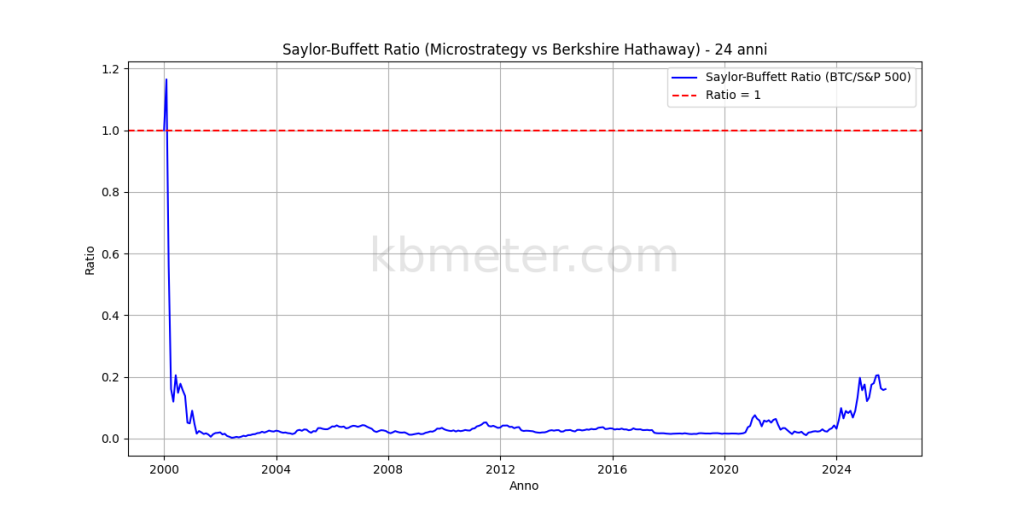 Saylor-Buffett Ratio Back to Dot-Com Bubble Levels in October 2025 — But Don’t Rush to Conclusions
