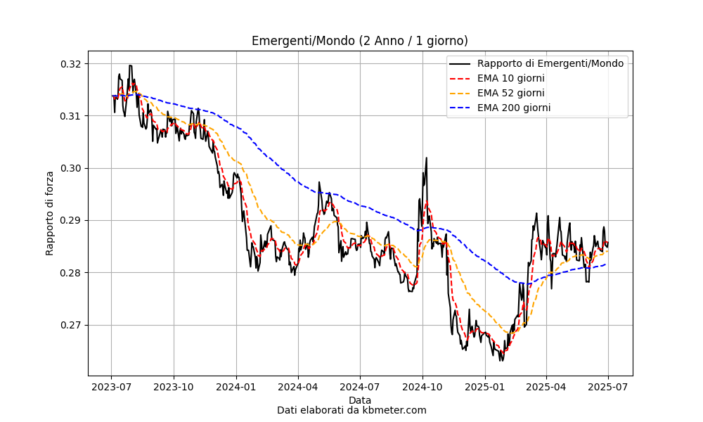 As seen in the relative strength ratio between the MSCI Emerging Markets Index and the MSCI World Index, a trend reversal has been underway since January, with emerging markets outperforming the global index.